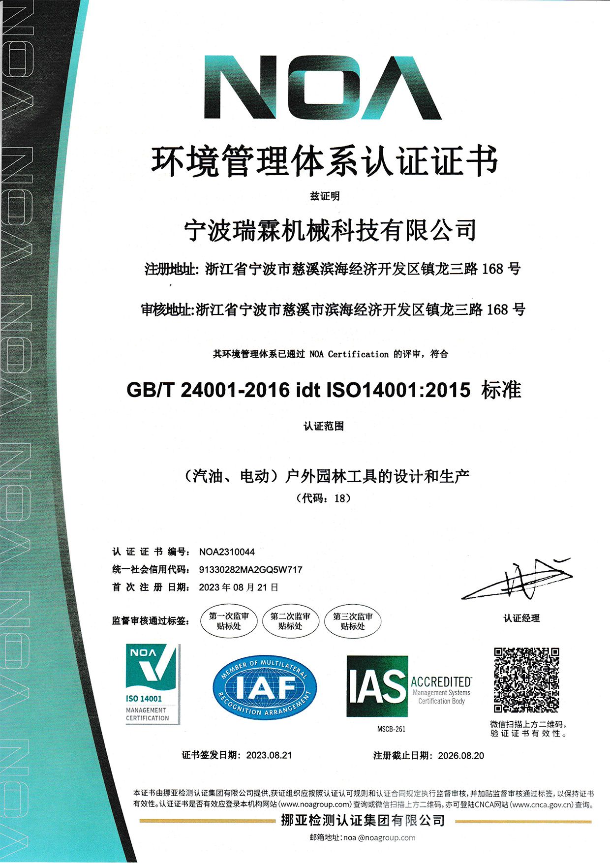 宁波瑞霖机械科技有限公司(简称NGP)是万搏在线(中国)唯一官方网站的全资子公司,成立于2019年4月,位于浙江省慈溪滨海经济开发区镇龙三路168号,占地面积约50000平方米。公司拥有雄厚的技术力量和先进的生产设备,是行业内规模最大的企业之一。NGP集产品设计、开发、生产、销售和服务于一体,主要从事各类汽油、割草机、修枝机、打草机、链锯、吹风机等园林工具的设计研发和制造,产品远销欧洲、美洲、大洋洲等多个国家和地区,同时内销全国各地。作为国家知识产权优势企业,公司注重产品设计,并在此基础上采用先进的精益生产方式,以7S活动规范现场管理,以量身打造的ERP系统整合及有效利用企业资源,以ISO 9001:2015等标准来完善公司质量管理体系,并通过“GS”、“EMC”、“CE”、“UL”等认证来确保产品的安全性和可靠性,已取得各地区出口许可证和自营进出口权。
